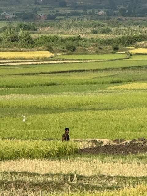Le spectacle de la nature nous a accompagnées tout au long du trajet : les rizières, déclinant toutes les nuances de vert et d’or selon la maturité du riz, ont offert un véritable plaisir des yeux malgré la fatigue de la route.