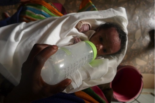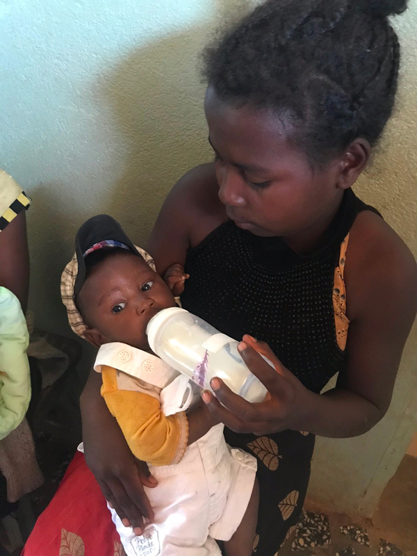 - Du lait maternisé 1er âge, (besoin annuel 300 boites de 900gr) indispensable pour sauver les bébés ayant perdu leur mère à la naissance (10% des accouchements) ou ne pouvant être allaités pour diverses raisons (dénutrition de la mère, maladies…etc). Beaucoup de bébés arrivent dans un état catastrophique.